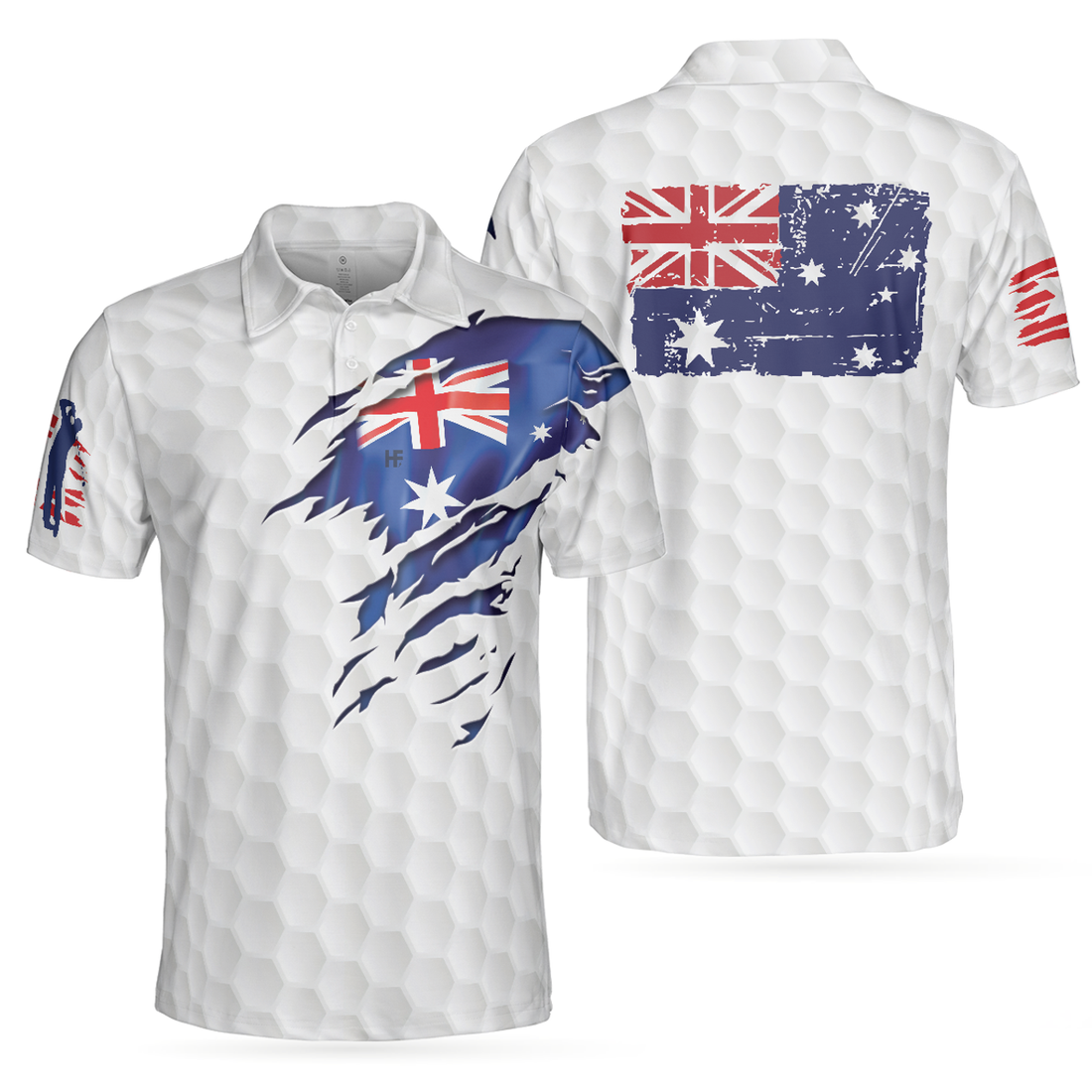 Golf Australian Flag Men Polo Shirt, White Golf Pattern Polo Shirt, Best Australian Golf Shirt For Men