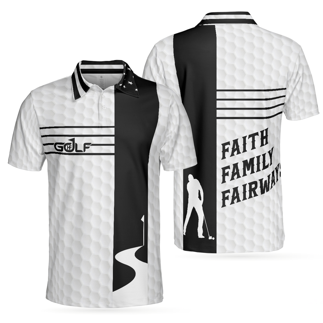 Black And White Golf Men Polo Shirt, Faith Family Fairways American Flag Golf Shirt For Men, Gift For Golfers