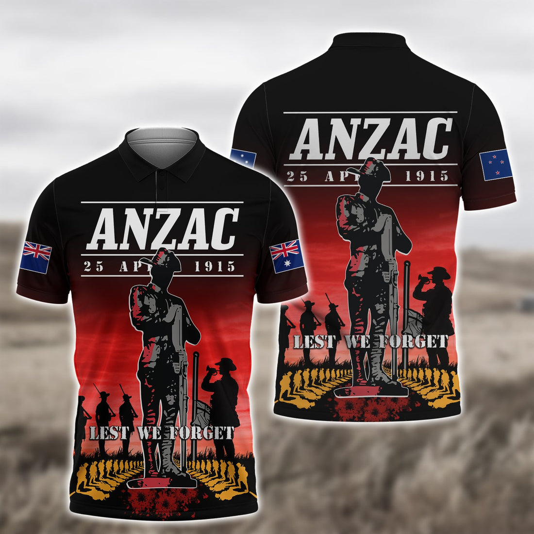 FUNSTUFFPRINT Anzac Day 25 April, Lest We Forget 3D Polo Shirt