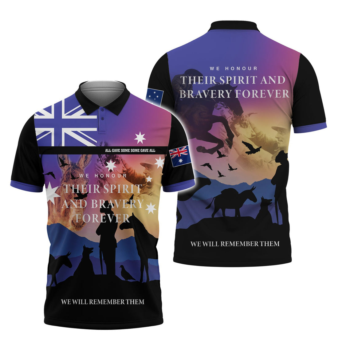FUNSTUFFPRINT Anzac We Honour Their Spirit Polo Shirt Size S-5XL