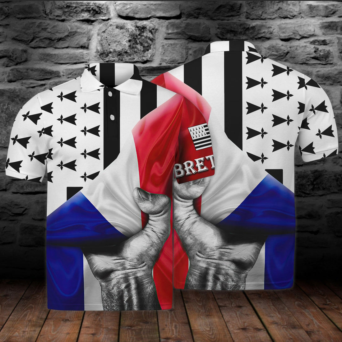 FUNSTUFFPRINT Brittany Celtic Polo Shirt Size S-5XL