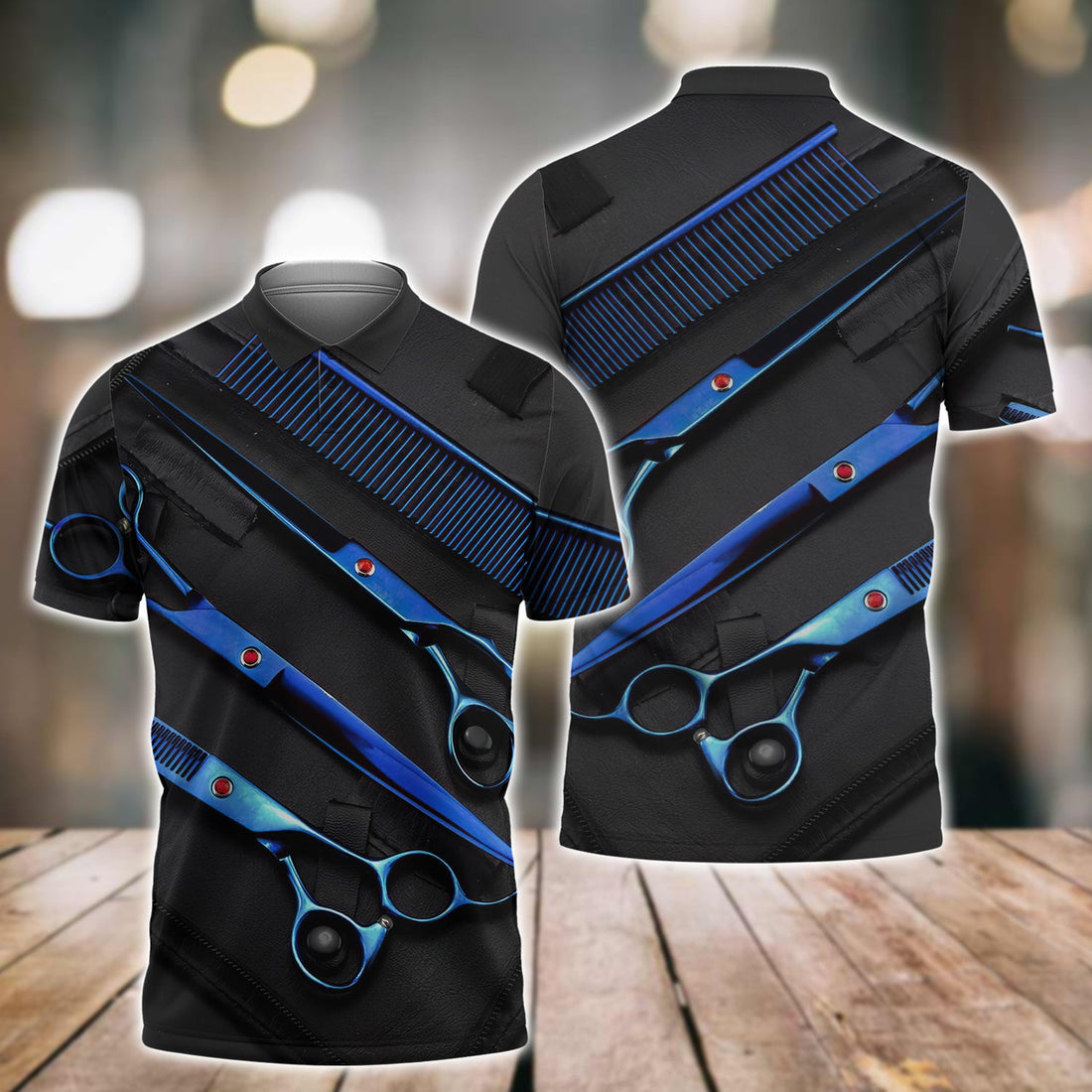 FUNSTUFFPRINT Barber Full Print 3D All Over Print Polo Shirt Size S-5XL