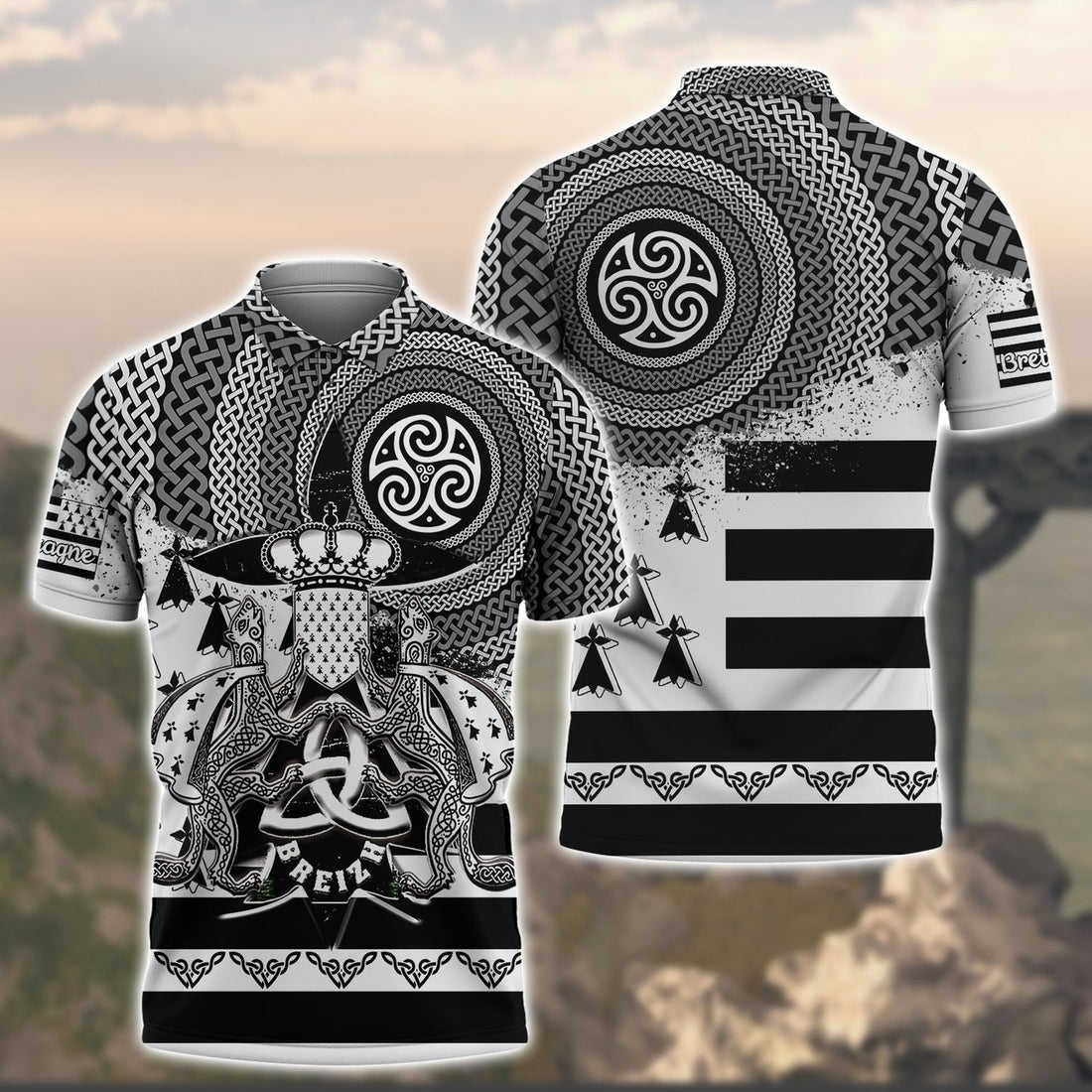 FUNSTUFFPRINT Brittany Celtic Polo Shirt Size S-5XL