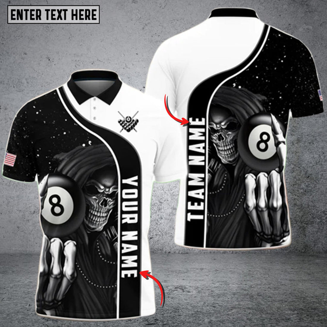 Custom Billiards Passion Personalized Name 3D Shirt, Billiard Reaper 8 Ball Polo Shirt