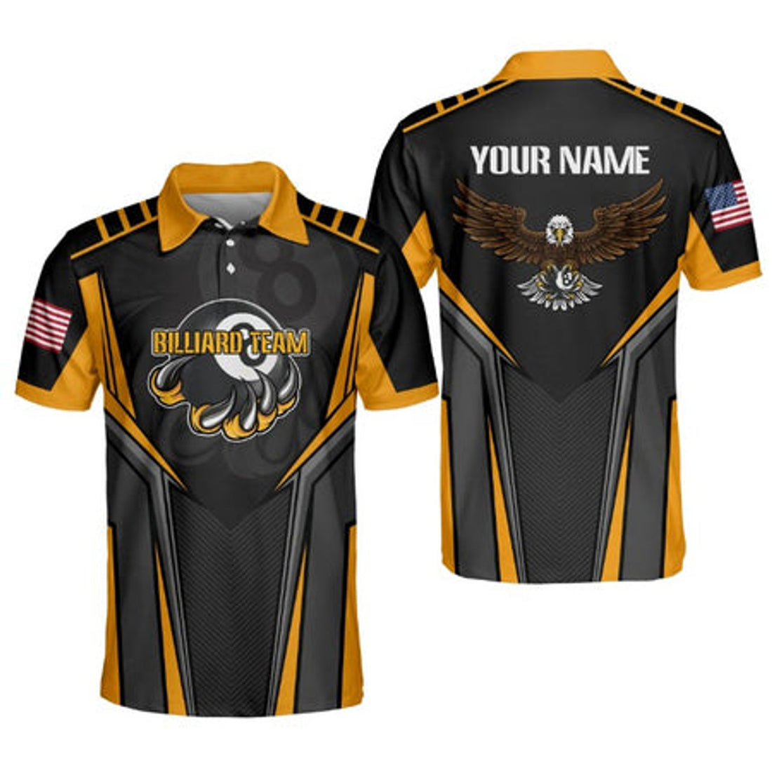 Custom 3D Eagle Billiard Polo Shirt, Custom name Billiard uniform, Billiard clothing