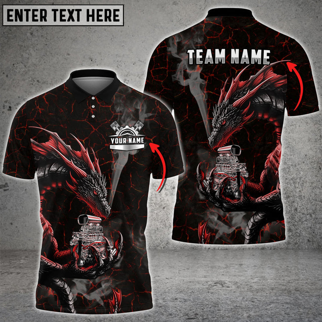 Custom Mechanic Dragon V8 Engine Custom Name Multi Color Printed 3D Polo Shirt