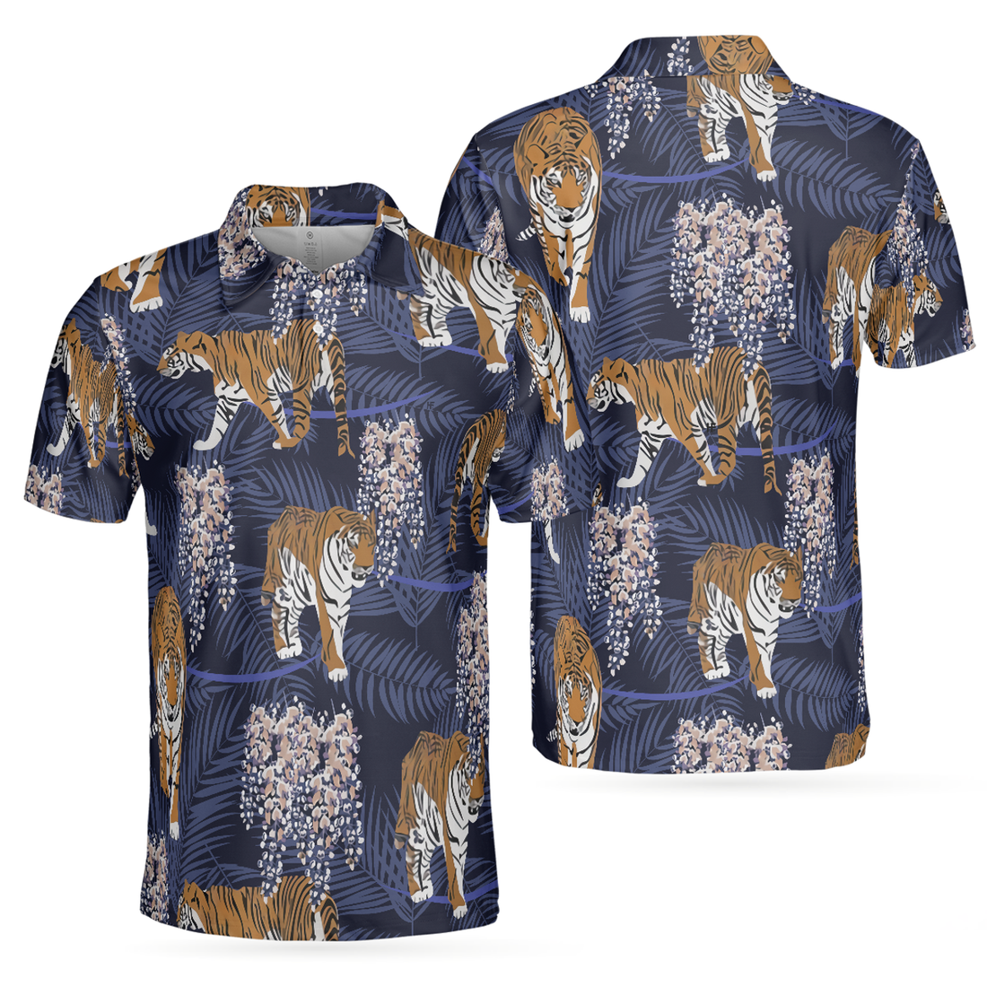 Tiger & Tropical Leaves Tiger Polo Shirt For Men, Tropical Tiger Shirt Short Sleeve, Gift For Tiger Lover - Perfect Gift For Men