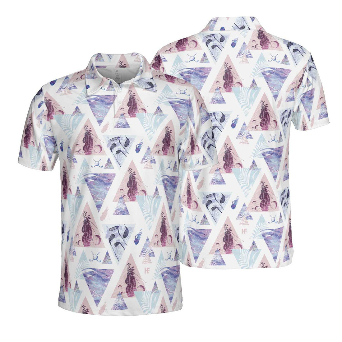 Premium American Golfer Polo Shirt, White Golf Pattern American Flag Polo Shirt, Best Golf Shirt For Men