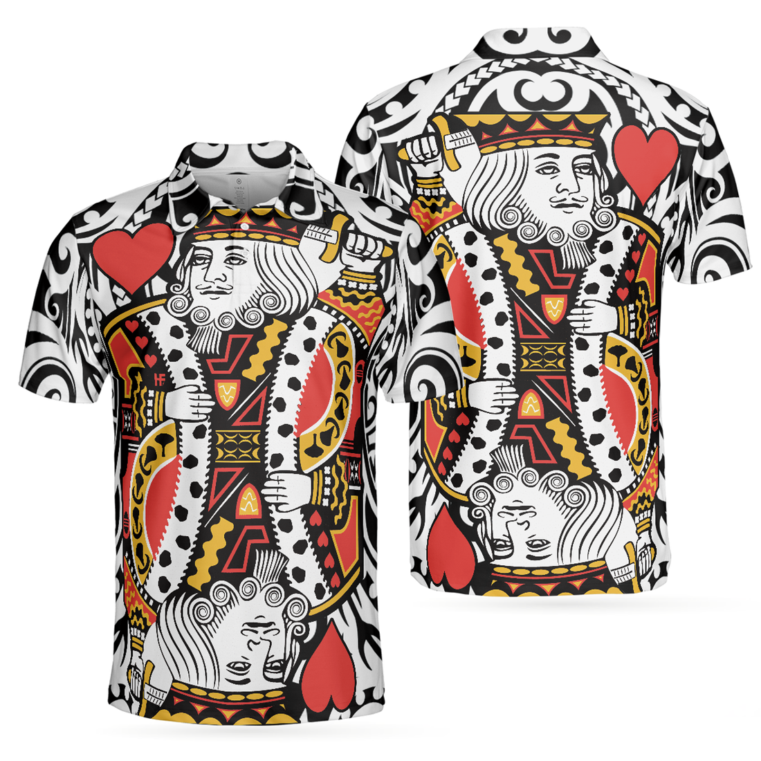 Poker King Of Heart Short Sleeve Polo Shirt, Playing Card Polo Shirt, Best Poker Shirt For Men