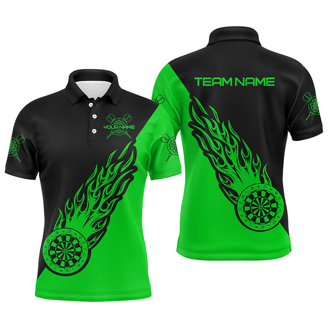 Personalized Green Black Flame Mens Darts Polo Shirt Darts Shirt For Men Dart Jerseys