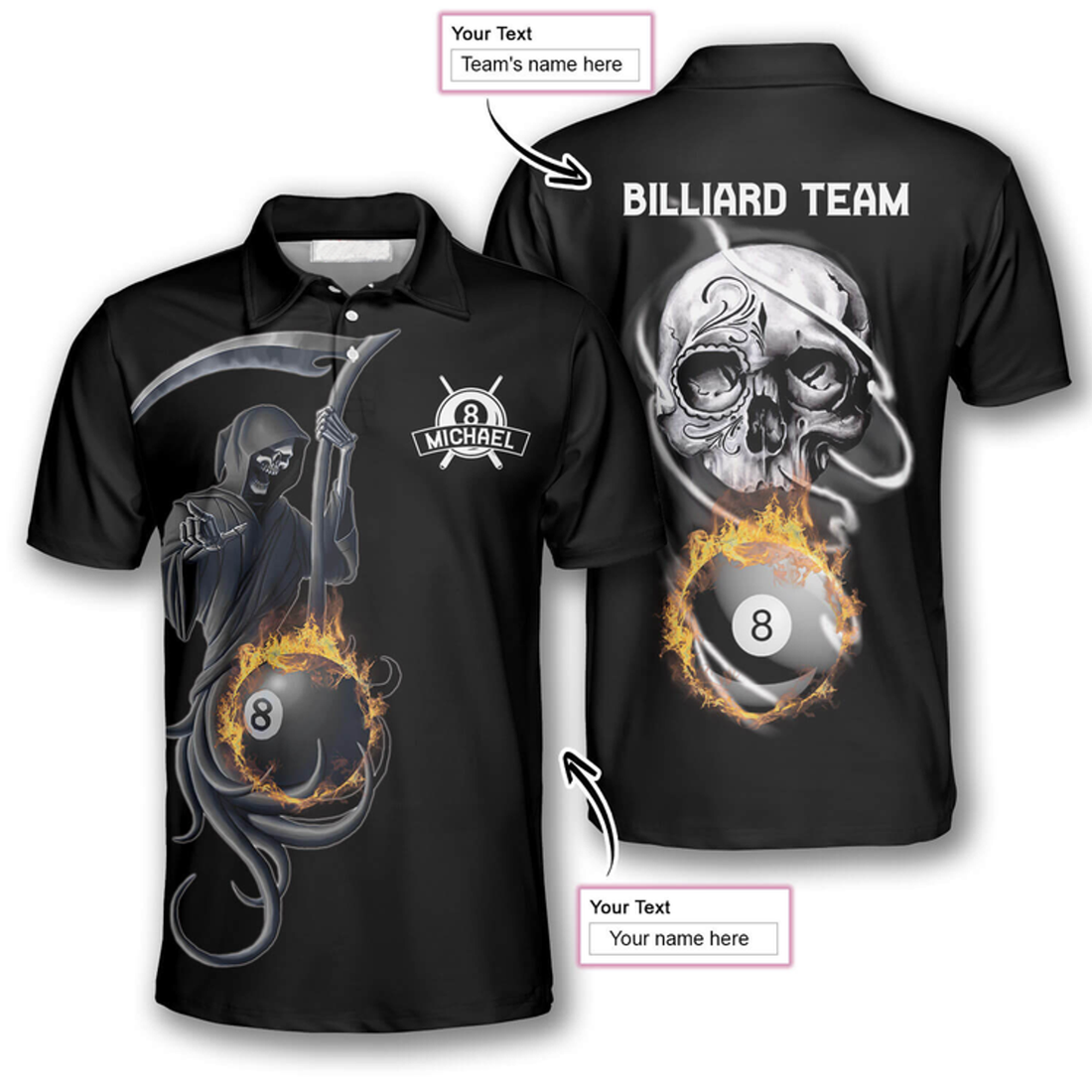 Personalized Grim Reaper Custom Billiard Polo Shirts for Men, Skull Shirt, Billiard Shirt