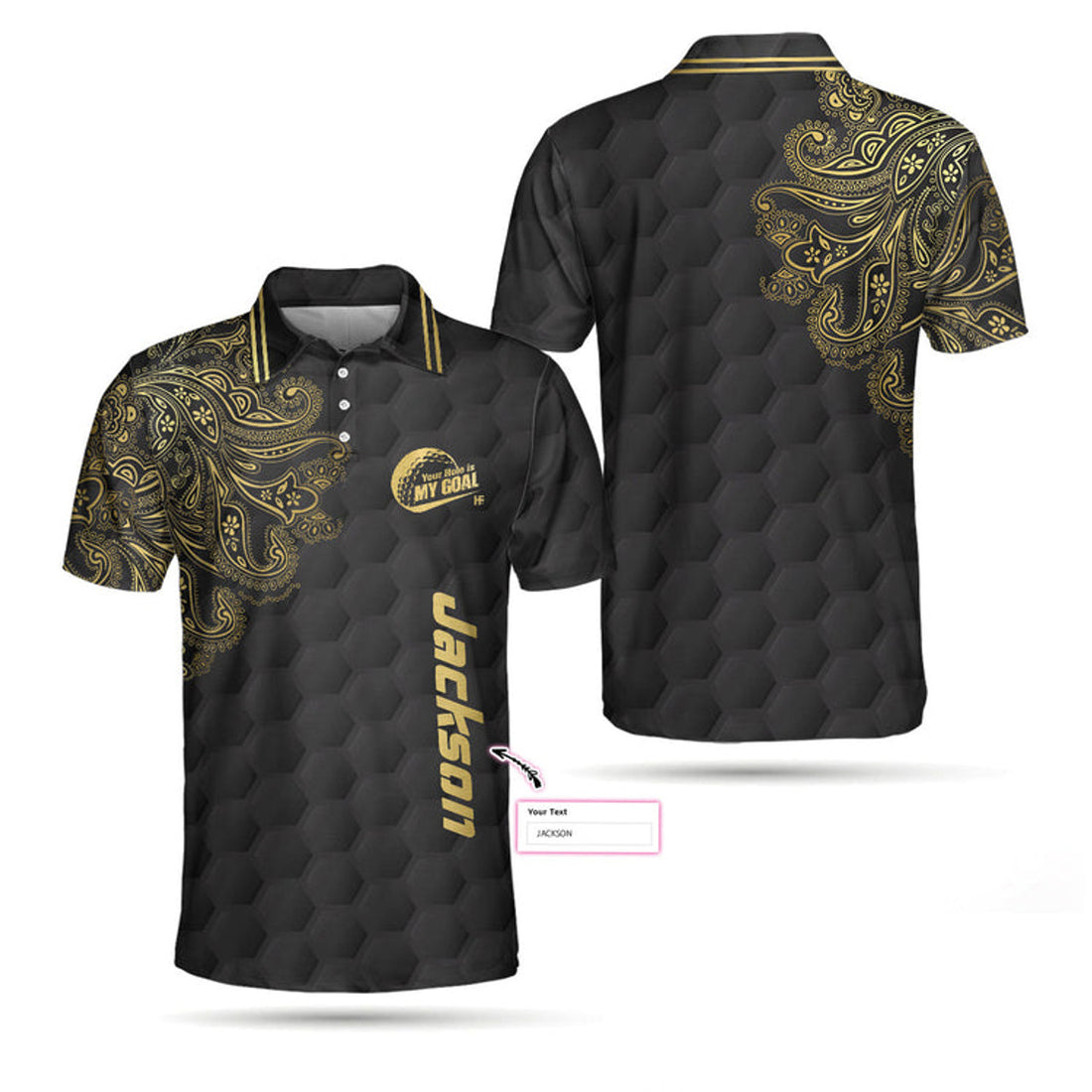 Personalized Golden Your Hole Is My Goal Custom Polo Shirt, Luxury Black And Gold Golf Shirt For Men