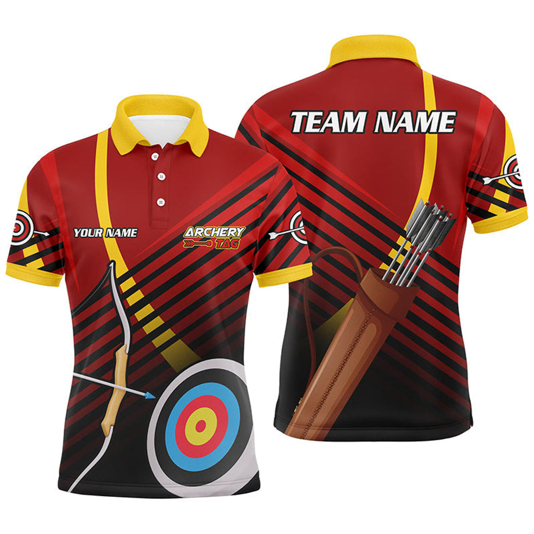Personalized 3D Targets Archery Polo Shirts For Men, Custom Red Black Arrows Archery Team Shirts