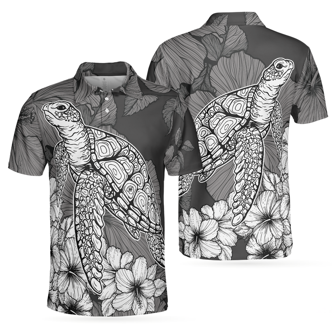 Hibiscus Turtle Shirt For Men Polo Shirt, Sea Turtle Polo Shirt For Men, Hibiscus Floral Shirt Design, Best Gift For Men