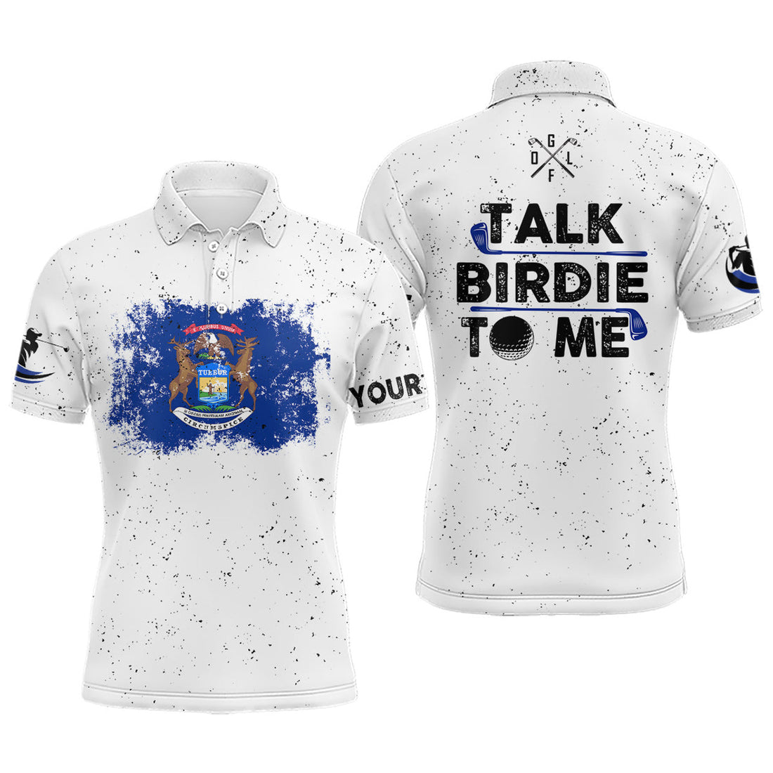 Custom Retro Michigan Grunge Mens Golf Polo Shirts Custom Name Patriotic Golf Shirts For Men Golf Gifts