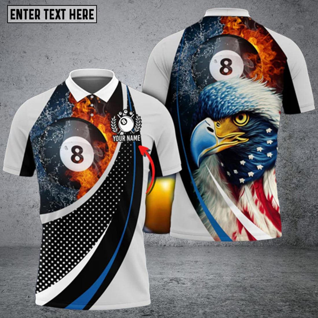 Custom Billiard 8 Ball Eagle American Flag Personalized Men Polo Shirt, Patriotic 3D Eagle Billiard Shirts