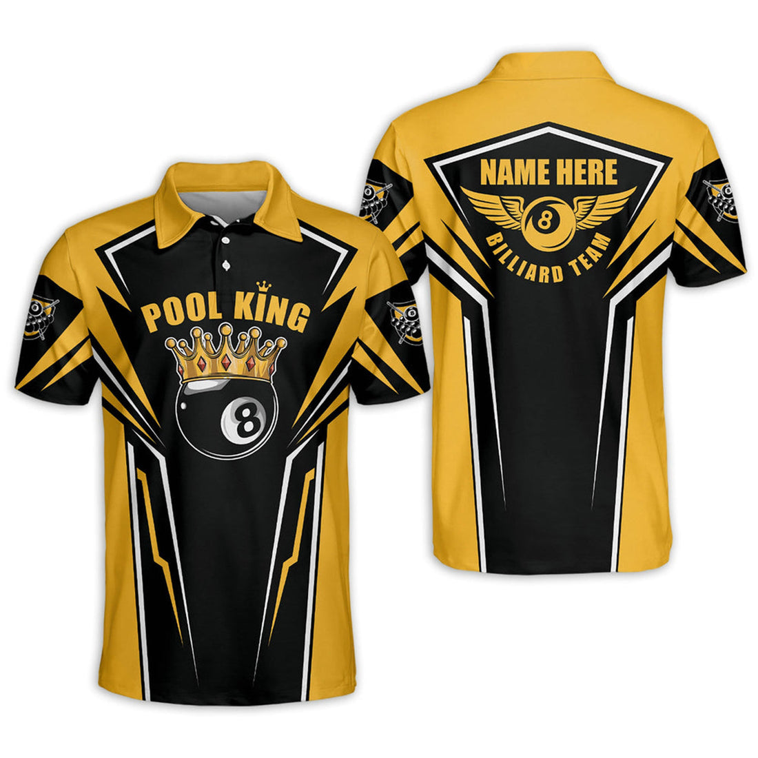 Custom Billiards Team Shirts for Men, Personalized Name King Pool Billiard Polo Shirt