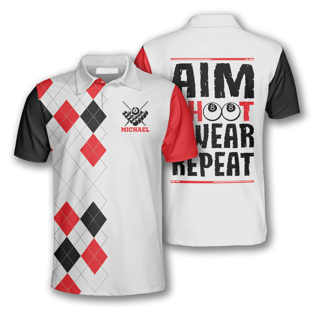 Custom Billiards Aim Shoot Swear Repeat Custom Billiard Shirts for Men, Custom Billiard Shirts for Team, Men's Billiard Polo Shirts