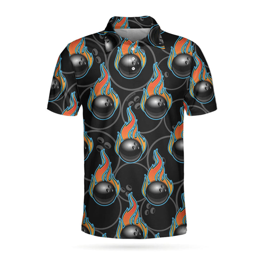 Bowling In Fire Seamless Pattern Short Sleeve Polo Shirt, Bowling Ball Polo Shirt, Best Bowling Shirt For Men