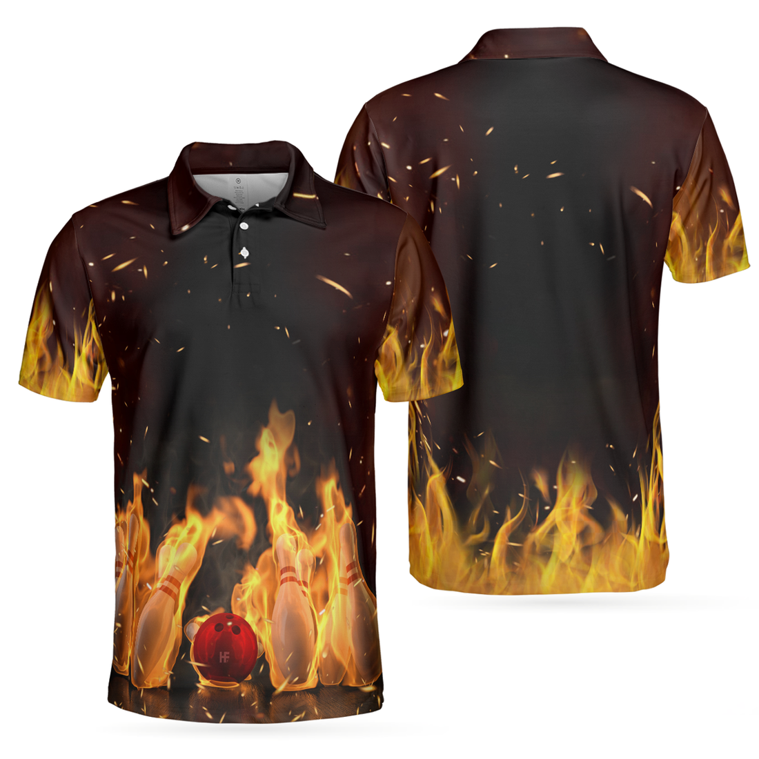 Bowling Men Polo Shirt - Bowling Pin With Fire Polo Shirt, Bowling Polo Shirt For Men - Perfect Gift For Friend, Family, Bowling Lovers