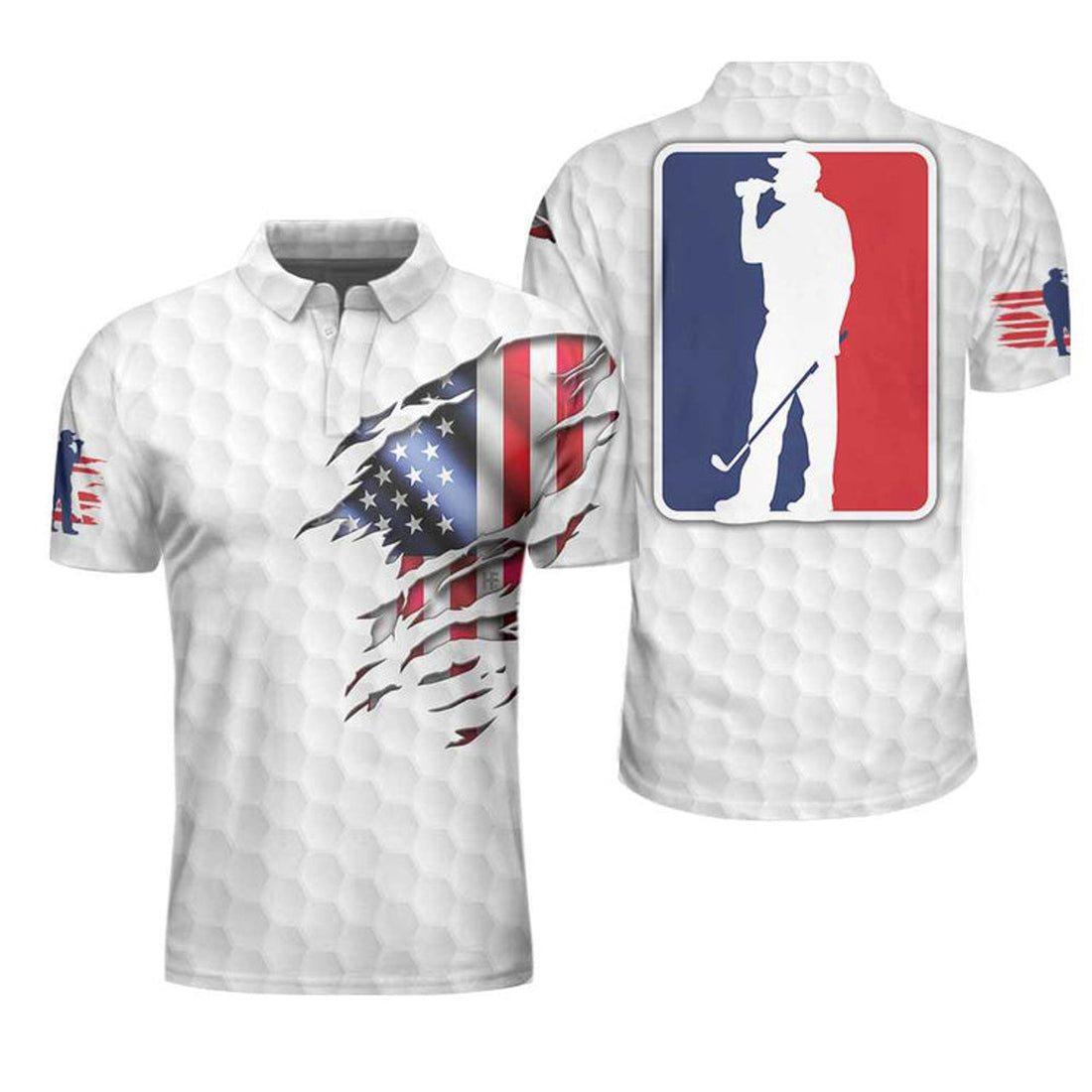 American Golfer Eagle Golf Ball Texture Polo Shirt, Ripped American Flag Polo Shirt, Patriotic Golf Shirt For Men