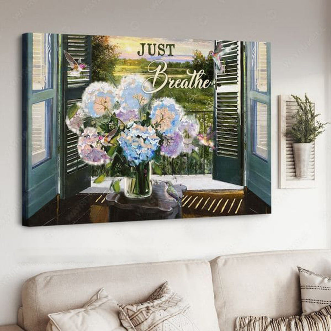 Just Breathe, Poster Decor, Hummingbird Poster, Window Decor Poster and Canvas