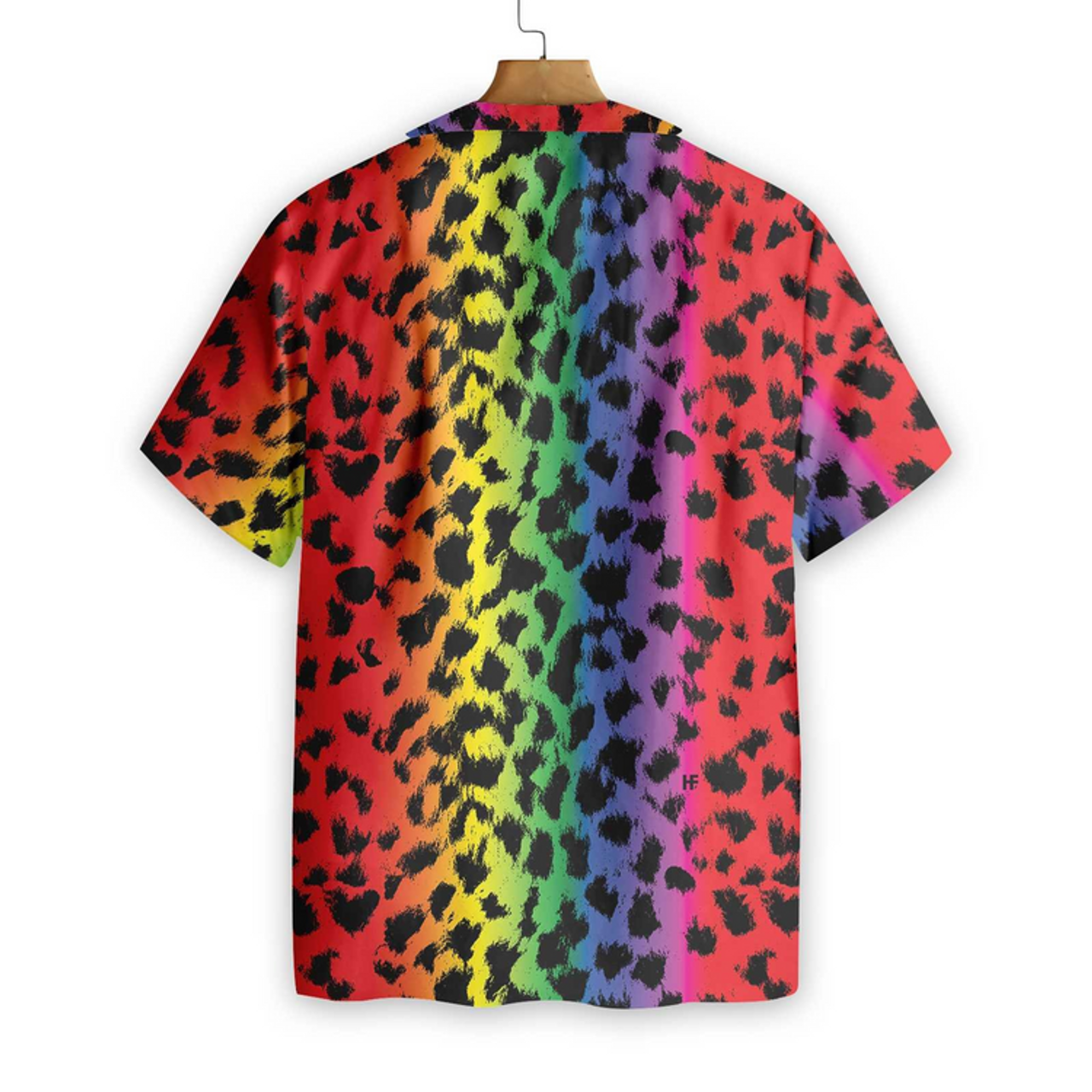 3D Shirt For Gay, Cool Leopard Skin With Rainbow Color LGBT Hawaiian Shirt