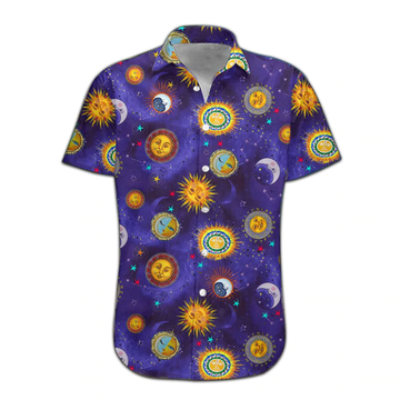 3D Sun And Moon Hippie Hawaii Shirt, Hawaiian Shirts for Men Print Button Down Shirt