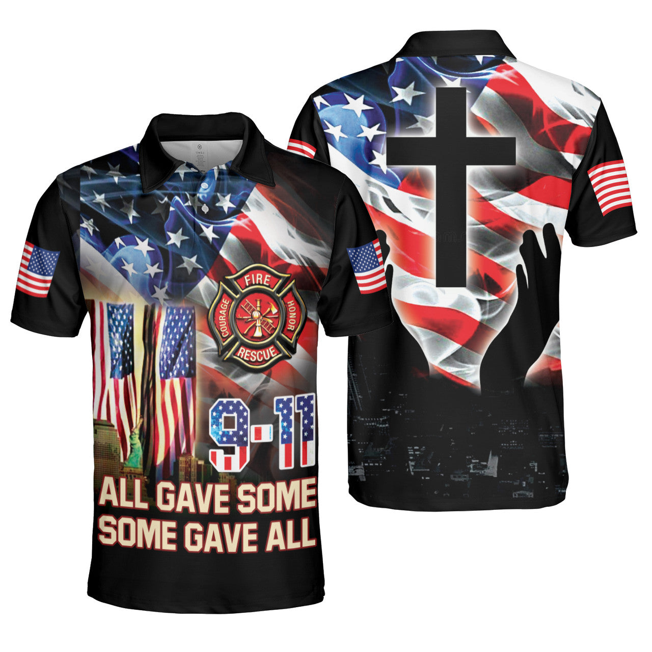 9/11 Firefighter US Flag God Freedom All Gave Some, Some Gave AOP Polo Shirt