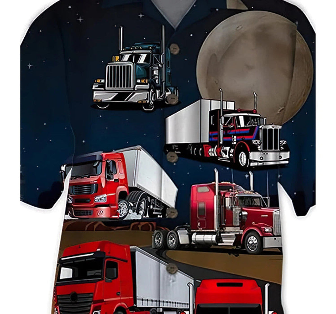 Amazing Truck Driver And Moon Short, Hawaiian Shirt, Button Up Aloha Shirt For Men, Women