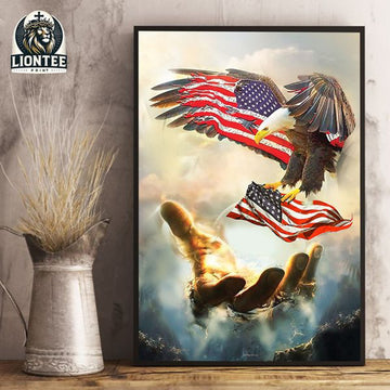 American Eagle On The God’s Hand In Heaven Us Independence Day Poster and Canvas