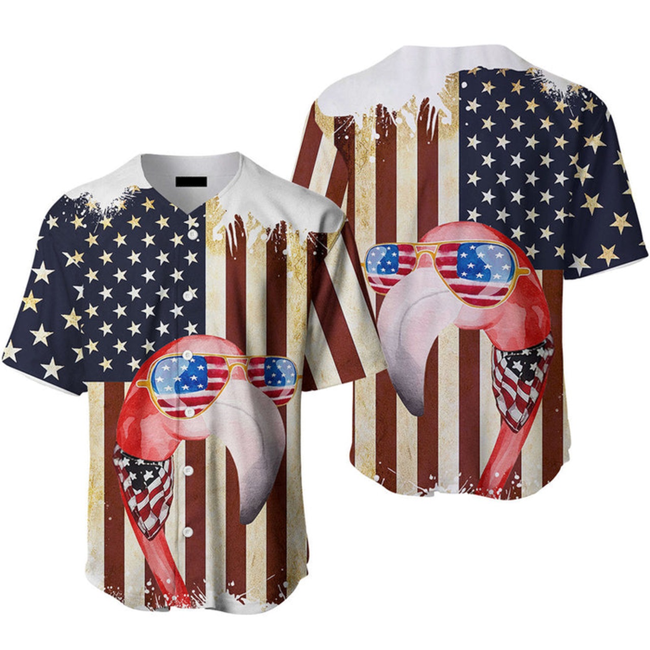 American Flag Flamingo Baseball Jersey, Idea Gift for Men & Women