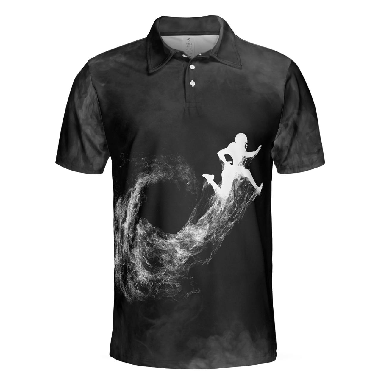 American Football On Smoke Black Theme Background Men Polo Shirt, Smoke Football Player Polo Shirt, Best Football Shirt For Men, Gift For American Football Lovers