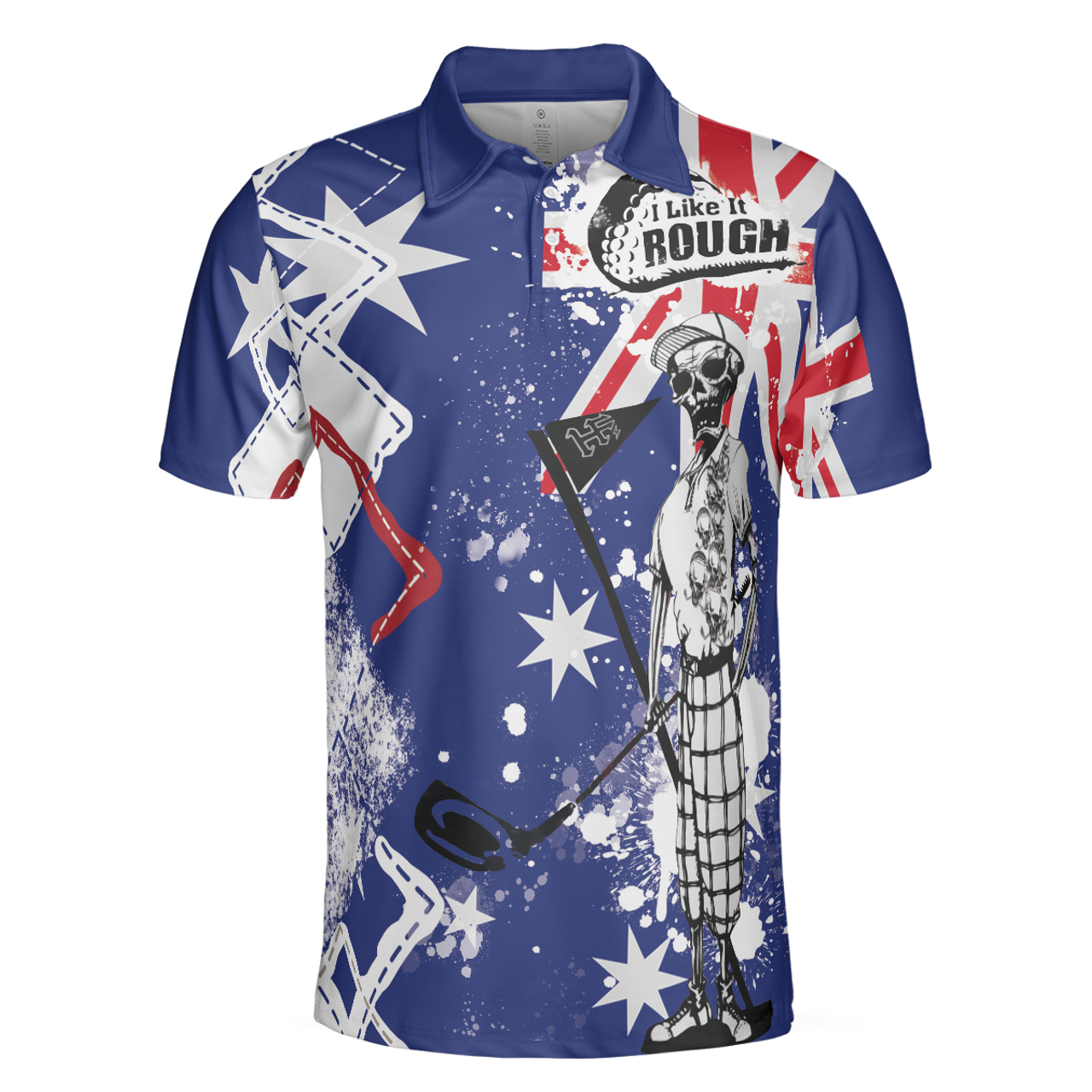 Argyle Pattern Skeleton Golfing Men Polo Shirt, Golf I Like It Rough Australian Flag Polo Shirt, Funny Golf Shirt For Men