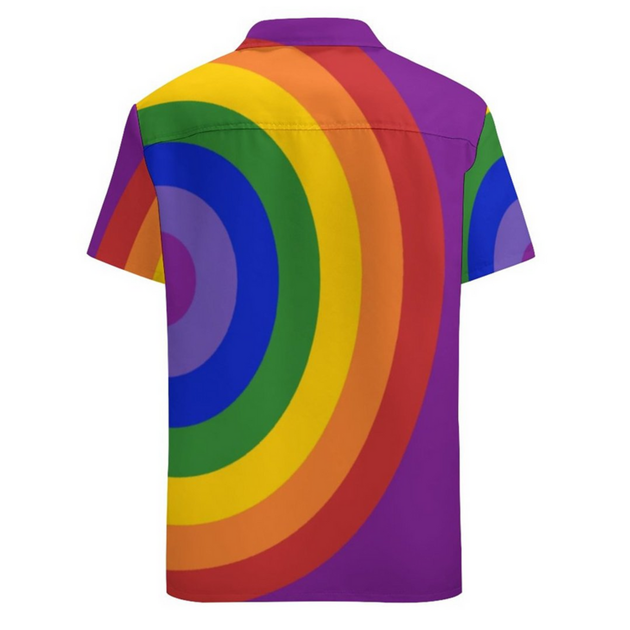 Asymmetrical Rainbow Bullseye Lgbt Pride Hawaiian Vintage Shirt Mens Button Down Plus Size Tropical Hawaii Beach Shirts