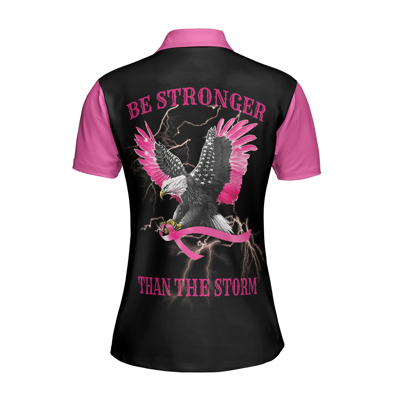 Be Stronger Than The Storm Cancer Awareness Short Sleeve Women Polo Shirt, Eagle Awareness Ribbon Polo Shirt For Ladies