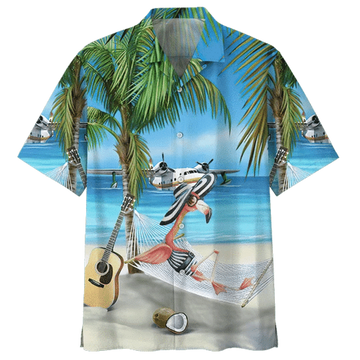 Beach And Flamingo Ornamental Design Hawaiian Shirt
