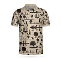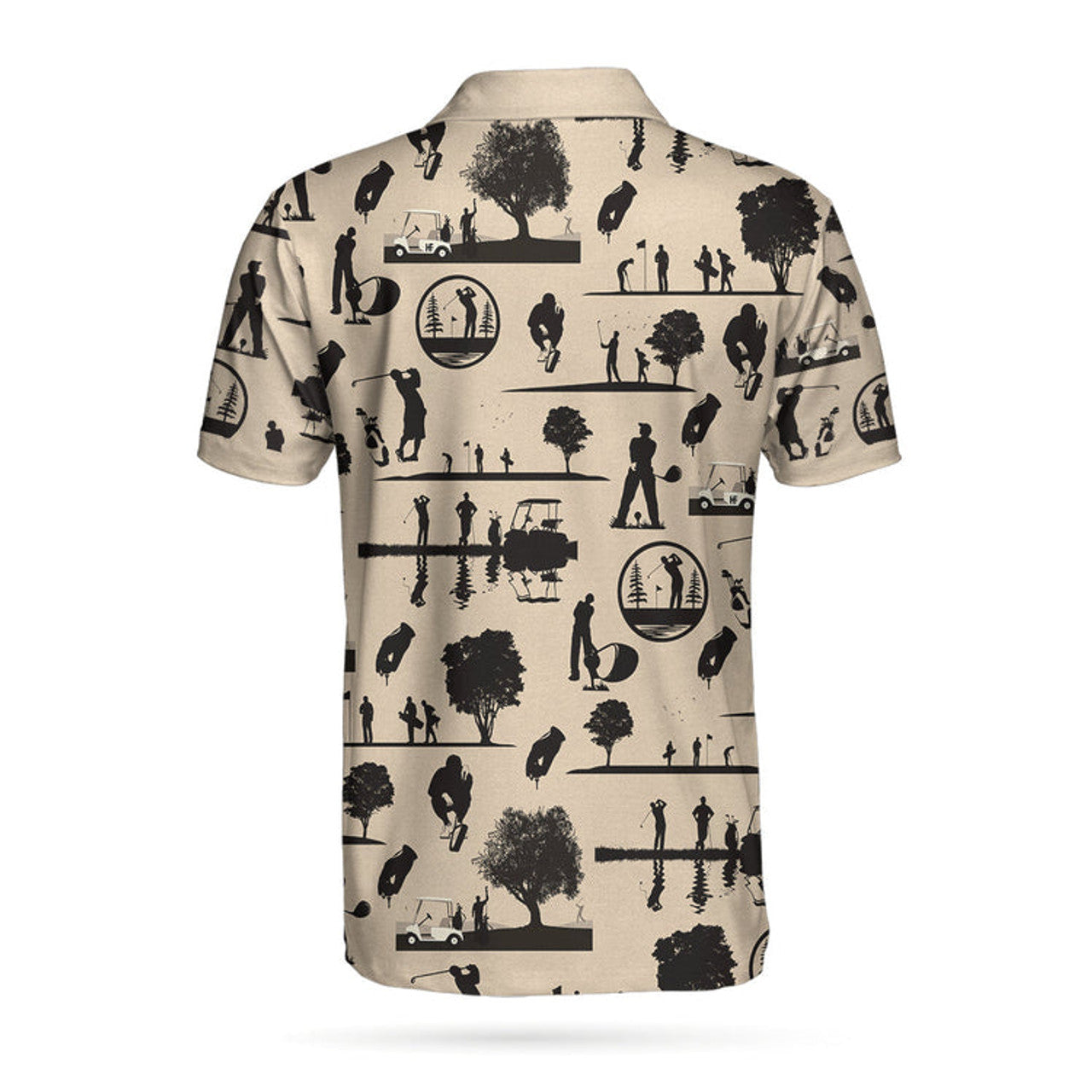 Beige Vintage Silhouette Golfers All Over Print Polo Shirt, Cream Polo Shirt, Best Golf Shirt For Men