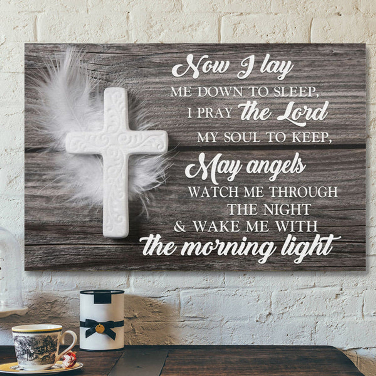 Bible Verse Canvas - Now I Lay Me Down To Sleep Prayer Canvas - Scripture Canvas Wall Art