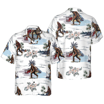 Bigfoots Are Ready For Summer Bigfoot Hawaiian Shirt, White Tropical Floral Bus Trip Bigfoot Shirt For Men, Best Gift For Men, Husband, Boyfriend