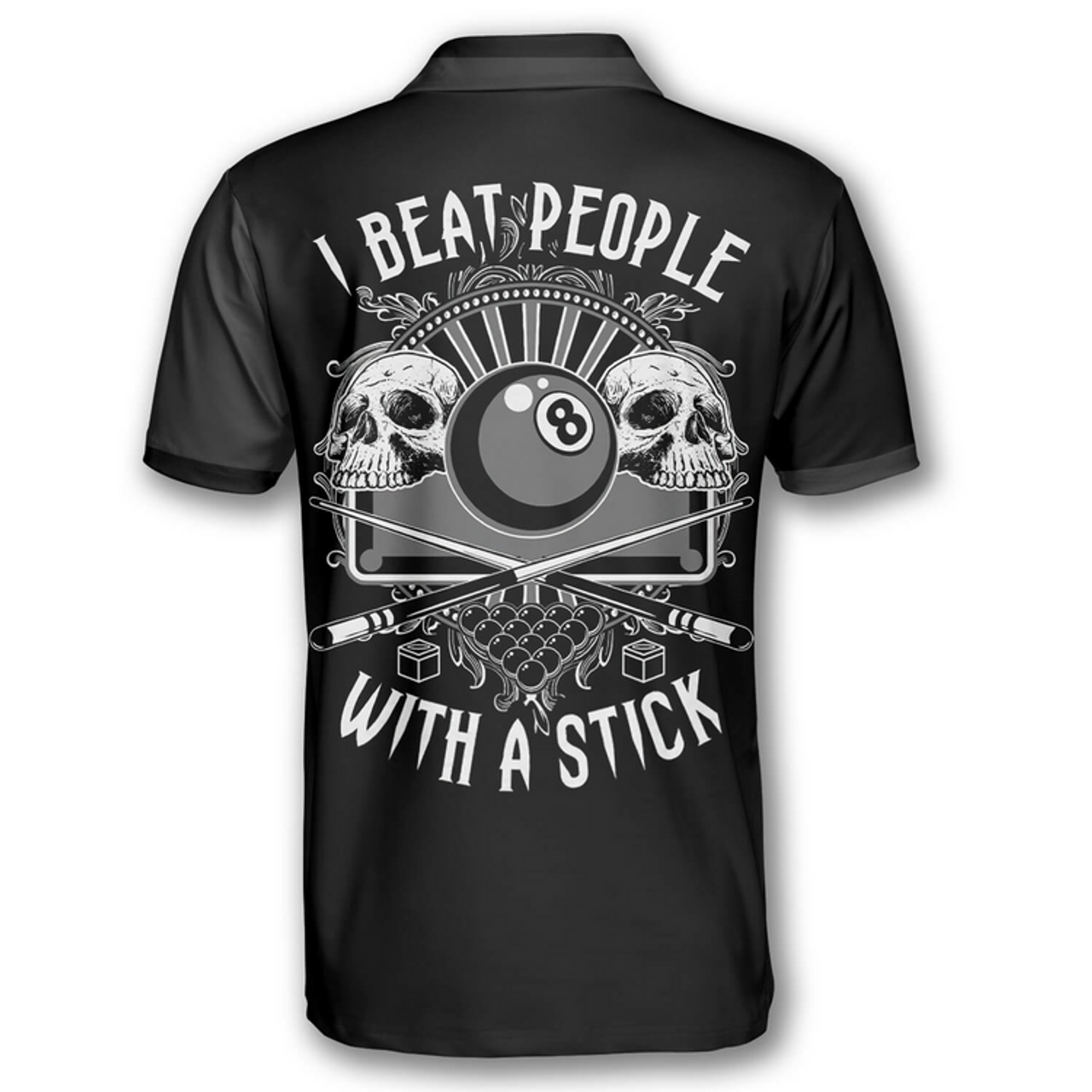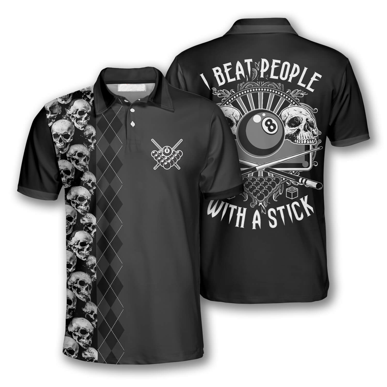 Billiard I Beat People With A Stick Pool Player Skull Argyle Pattern Billiard Shirts for Men Billiard Polo Shirt