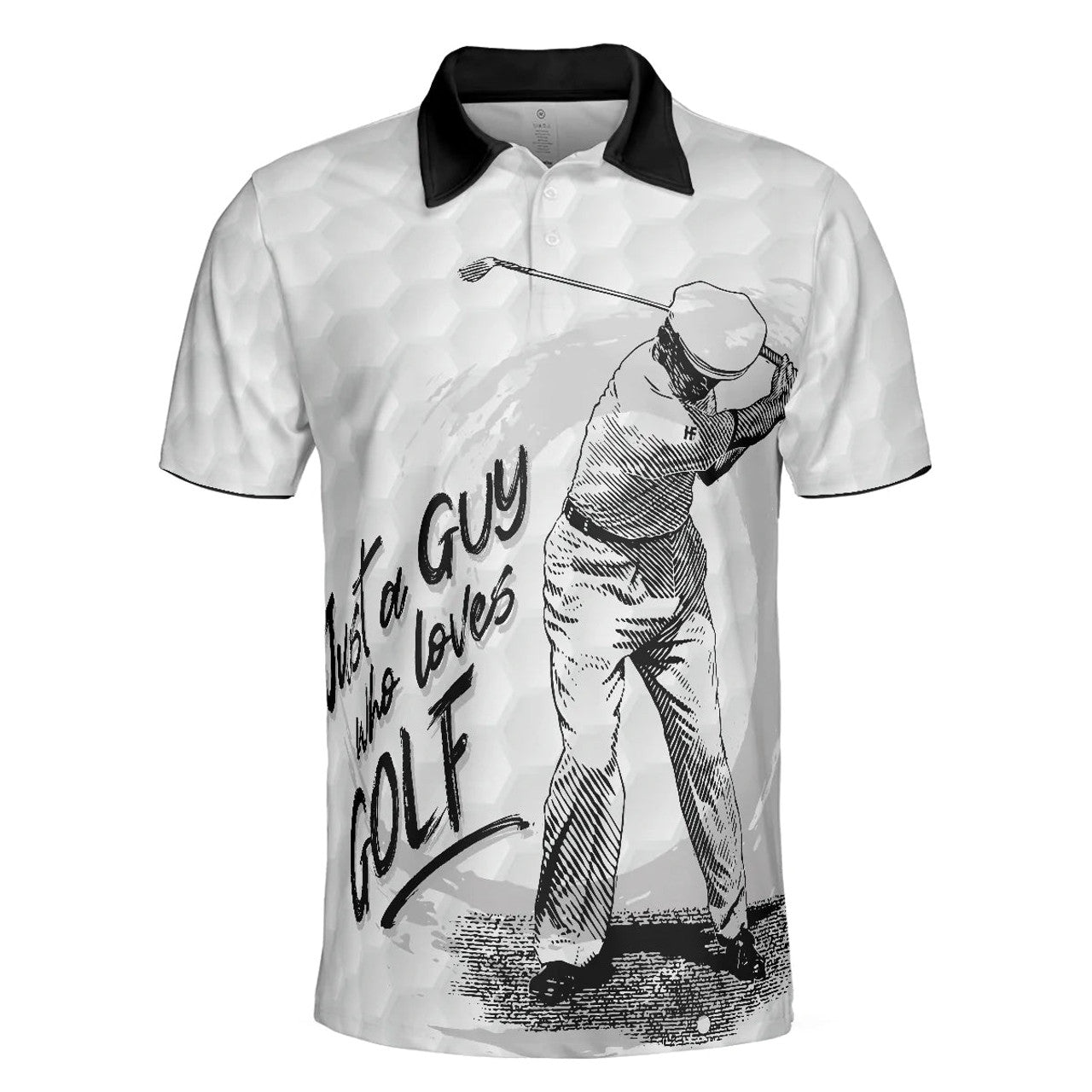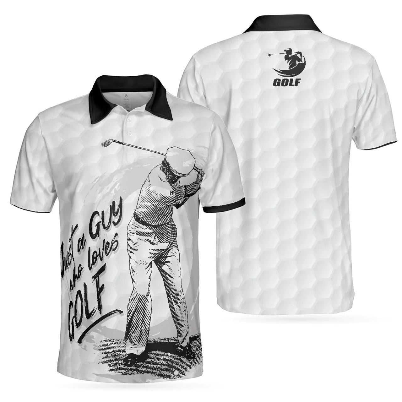 Black And White Golfing Men Polo Shirt, Just A Guy Who Loves Golf Shirt For Male, Basic Golf Shirt Design