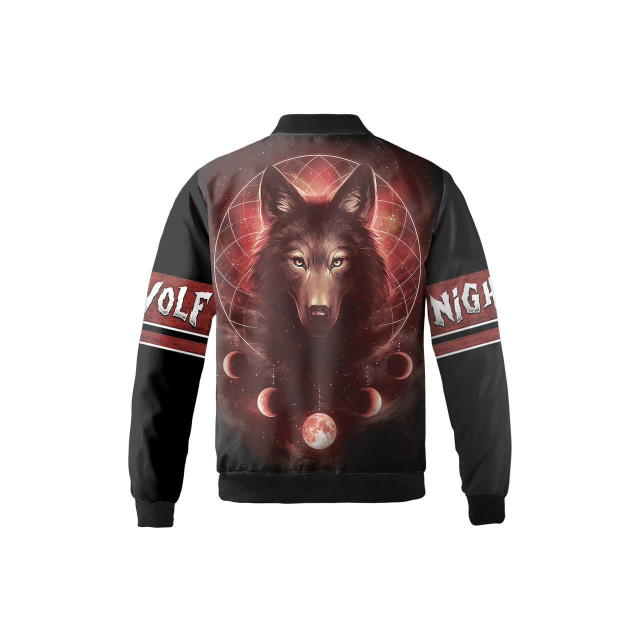 Bloody Full Moon Magic Staring Night Wolf Howling Wolf Fleece Bomber Jacket