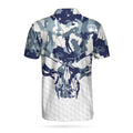 Blue And White Camouflage Golf Set Short Sleeve Skull Golf Polo Shirt, Best Camo Golf Shirt For Men