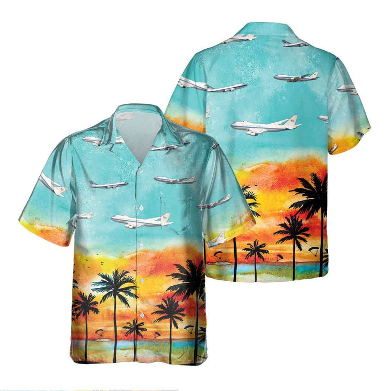 Boeing E-4 E4_Aircraft Palm Tree Hawaiian Shirt, Hawaiian Shirt for Men Dad Veteran, Patriot Day