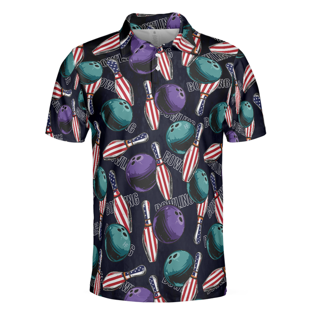 Bowling Is My Life Polo Shirt, American Flag Pattern Bowling Shirt For Men, Bowling Shirt Uniform Team