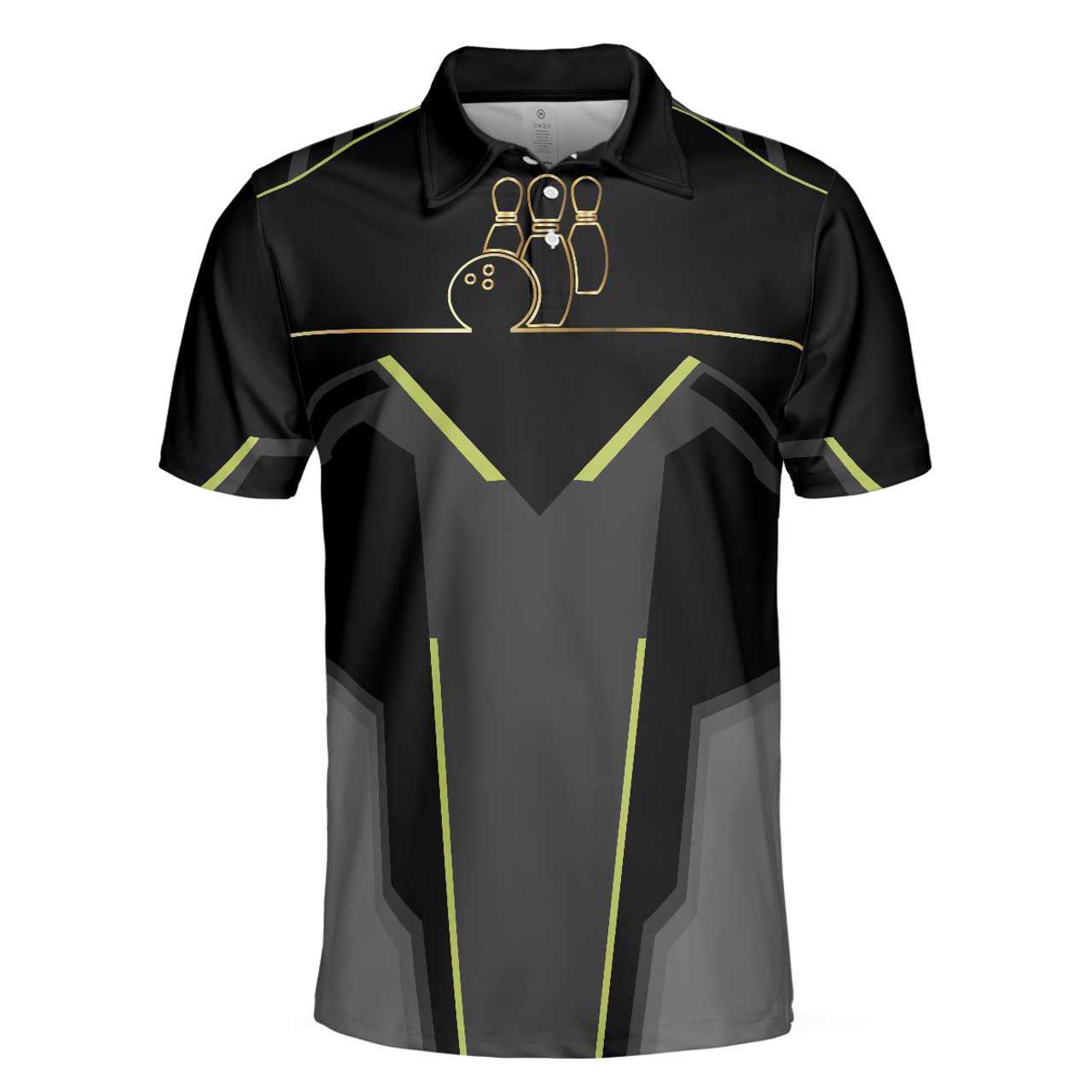 Bowling Men Polo Shirt - Strike Black And Golden Pattern Best Bowling Polo Shirt For Men - Perfect Gift For Friend, Family, Bowling Lover