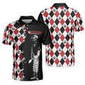 Bowling Red Black White Skull Pattern Short Sleeve Polo Shirt, Argyle Pattern Polo Shirt, Best Bowling Shirt For Men