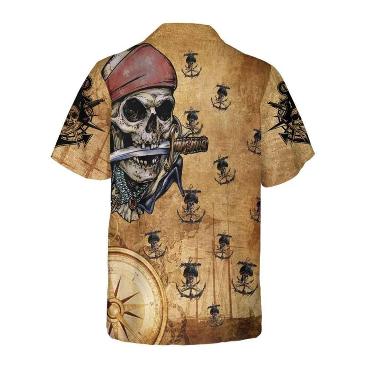 Captain Pirate With Knife Anchors Vintage Design Hawaiian Shirt