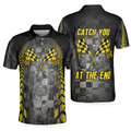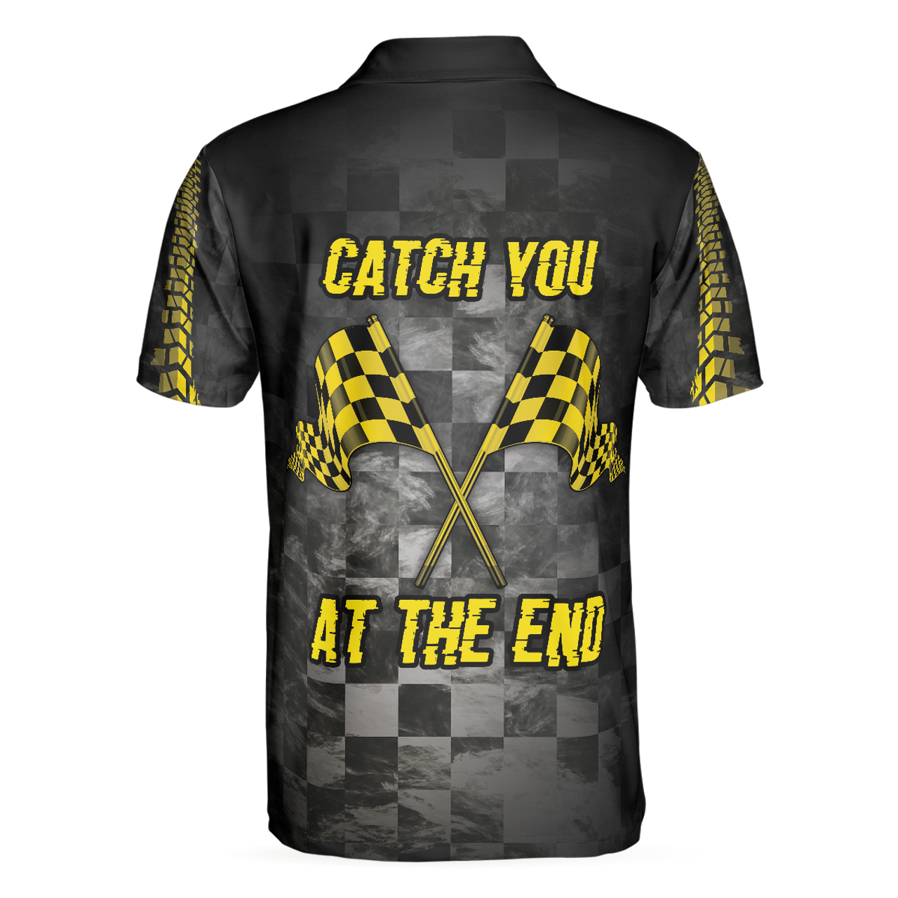 Catch You At The End Racing Short Sleeve Polo Shirt, Checker Pattern Race Polo Shirt, Best Racer Shirt For Men